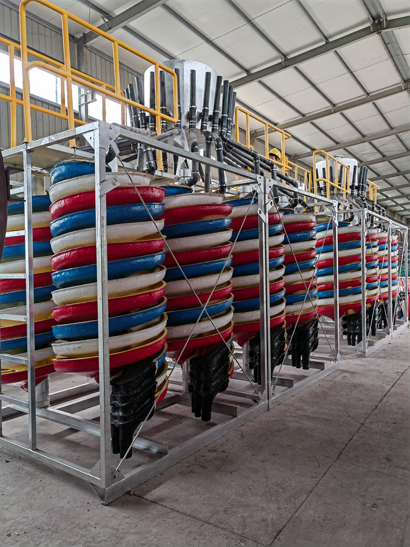 公司有玻璃鋼化工技術(shù)及制造工藝的優(yōu)勢(shì),早在1988年就研制開發(fā)了國(guó)內(nèi)大直徑及新斷面特性的DL—2000型兩米直徑玻璃鋼螺旋溜槽。該設(shè)備一臺(tái)處理能力相當(dāng)于40臺(tái)搖床,選別指標(biāo)優(yōu)良。1989年通過部級(jí)技術(shù)鑒定并獲獎(jiǎng),填補(bǔ)國(guó)內(nèi)選礦設(shè)備一項(xiàng)空白。20多年來,公司先后開發(fā)了一系列玻璃鋼選礦新設(shè)備,使設(shè)備性能、結(jié)構(gòu)參數(shù)更臻完善。就玻璃鋼螺旋溜槽φ400—φ2000各類系列產(chǎn)品和各種床條結(jié)構(gòu)的玻璃鋼搖床而言,公司擁有國(guó)內(nèi)完備的直徑與型號(hào)系列;完善的結(jié)構(gòu)參數(shù);過硬的制作質(zhì)量;新穎的改進(jìn)型式;可靠的設(shè)備選型方法。